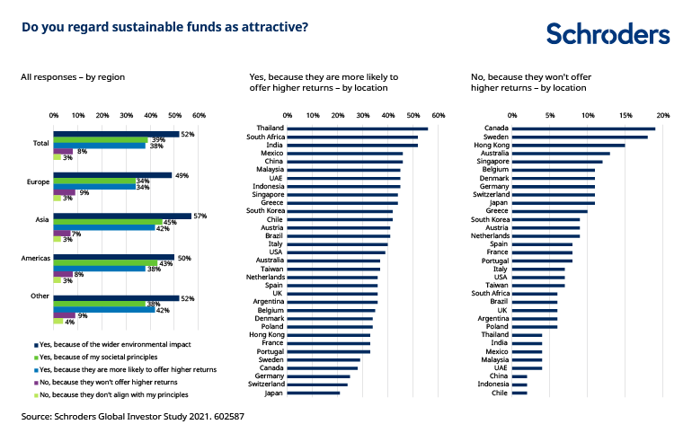 So what makes people attracted to sustainable funds? To what extent is this driven by return expectations? Our flagship Global Investor Study can offer several insights.