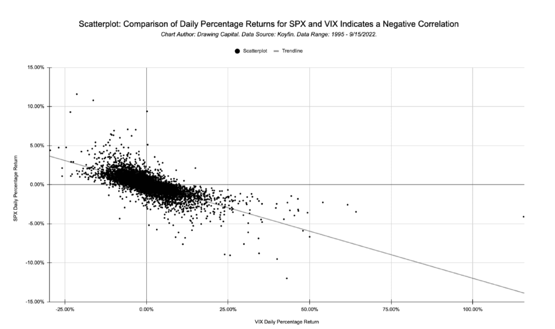 Since 1995, the correlation between the daily percentage returns for the SPX and VIX is about -0.72, indicating a notable negative correlation between SPX and the VIX.