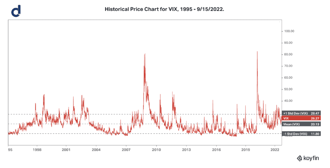 The above chart plots the daily percentage returns for the SPX and VIX indices from 1995 to September 15, 2022.