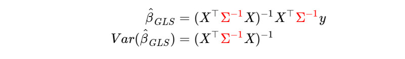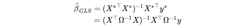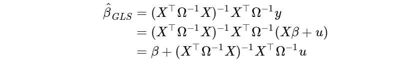 Our focus in on the GLS estimator for the linear regression model with non-constant variance terms (Σ = σ2Ω) across all observations, which means that residuals are heteroscedastic and/or serially dependent.