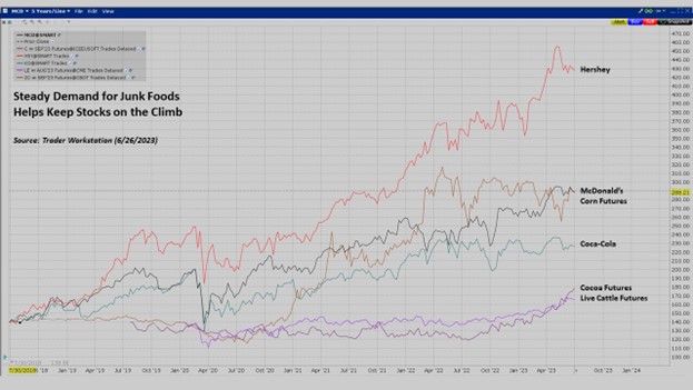 it’s very interesting to me because these costs don’t seem to be affecting certain fast-food companies. Some popular fast-food companies are seeing their shares go higher recently, right – McDonald’s, Wendy’s, Restaurant Brands International – they operate Burger King, among others, like Tim Hortons, and Popeyes; Yum! Brands, which has Taco Bell and Habit Burger Grill. There are others as well. So, the processing companies appear to be suffering, while fast-food is benefiting. And I was looking at the U.S. CPI … and I know you mentioned this in your report, Sean – the Consumer Price index – that the average price per pound of ground beef rose to a new record high in May, up 3.6 percent over the prior month, and a little more than 25 percent since the start of 2021. So, that’s even bigger than the 17.7 percent increase over that same period for all meats, poultry, fish, and eggs category in that report. So, how can we explain this? How can we explain that on the back of this inflation, on the back of higher live cattle food prices, at least from say McDonald’s – they’ve pretty recently raised the prices on certain of their menu items and their global comparable sales were up over 12-and-a-half percent in the first quarter. It’s like Coca-Cola, Hershey, which we talked about in previous podcasts…. It seems that demand is still there. So, same questions for Jeff: What are we seeing with these fast-food stocks? And those relationships with the meat processors that we talked about? What conditions are driving the fast-food sector prices outside of demand? I mean, the cost must be higher for them.