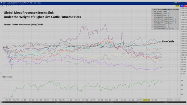 One thing I’ll point out with the processors is that U.S. cattle prices are particularly high compared to their international counterparts, and for companies that consume a lot of U.S. cattle, that may be causing issues. As an example, my most recent check shows Minerva Food’s shares are only down about 12 percent over the last year, whereas JBS shares are down three times as much – at a 36 percent decline. Now, both of those are Brazilian firms, like you mentioned, but JBS has a lot of plants in the U.S., whereas Minerva doesn’t. Lots of processors are struggling with high cattle costs and maybe having issues passing those on to restaurants, or whoever’s buying in the wholesale market. But I think the cattle pricing in the U.S. certainly has been a larger detriment.