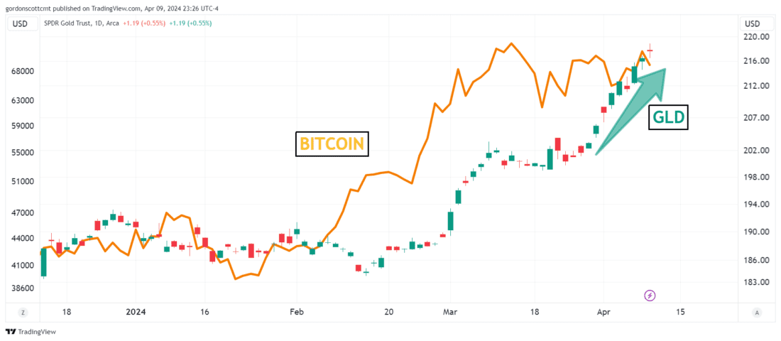 Will Bitcoin and GLD both make a run higher from here? Or will the latter leave the former behind. Unless inflation cools down, both are likely to continue going higher.