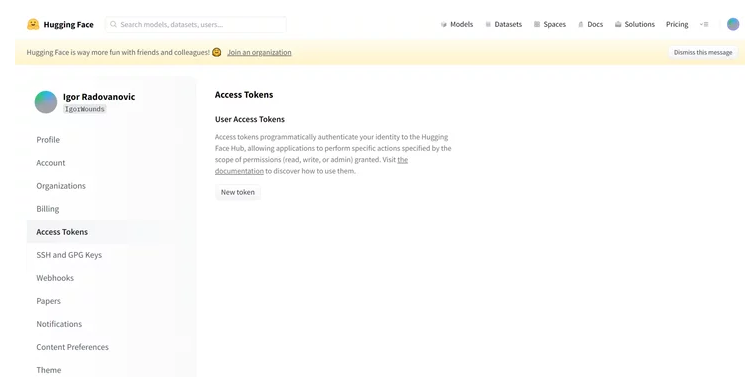 After that, create a .env file in the root of the repository by following the example template in env.example. The most important variable is to set your HUGGINGFACE_TOKEN as this will be needed to get the models that we will use from HuggingFace.