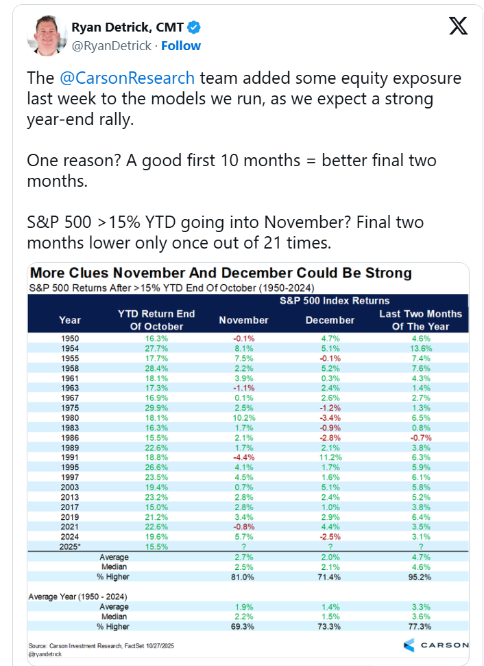 Originally Posted November 3, 2025 – Stocks Have History on Their Side Heading into Year-End