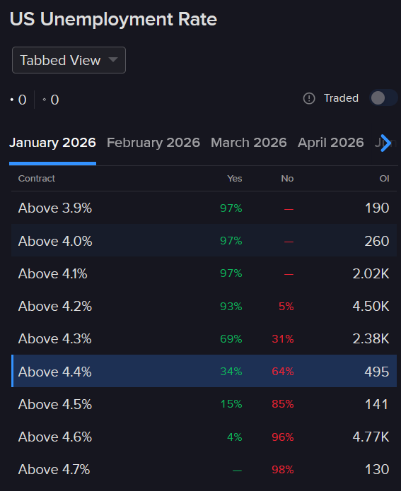 The unemployment rate is more predictable meanwhile, as it has a subdued deviation history relative to its nonfarm payrolls counterpart which is released in the same publication. The IBKR prediction market is generally expecting a figure between 4.3% and 4.5% and similarly, the monthly Reuters poll of 74 forecasters carries a median of 4.4% amidst minimums and maximums at 4.3% and 4.5%. The probabilities in the ForecastTrader of a number exceeding 4.2%, 4.3%, 4.4%, and 4.5% are currently at 93%, 69%, 34% and 15%.