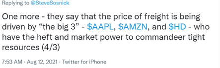 Unfortunately for investors, we need to concern ourselves not only with the problem of higher shipping costs themselves, but more importantly how the Fed perceives them. It is a second-order problem, like all the questions that involve not only the economy itself but how they could affect monetary policy. Like it or not, that is what floats the market’s boat.