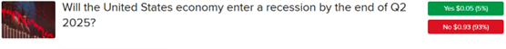 The EU and US are set to release GDP numbers tomorrow morning and the expectations are for 0% and 2.4%. For the EU, I like the risk-reward profiles of the “No” answers at the 0.4%, 0.65% and 0.9% thresholds, priced at $0.85, $0.93 and $0.96. The EU’s economy has been sluggish, and a growth rate exceeding 0.4% carries a probability near zero in my opinion. Furthermore, the last time GDP posted a robust figure above 0.4% was in the second quarter of 2022, three years ago.