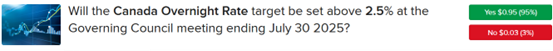 I’m confident that the Fed and Bank of Canada will keep rates steady tomorrow, and I like the risk-reward profiles of the “Yes” answers at the 4.125% and 2.5% thresholds for tomorrow’s meetings. The prices are currently $0.94 and $0.95.