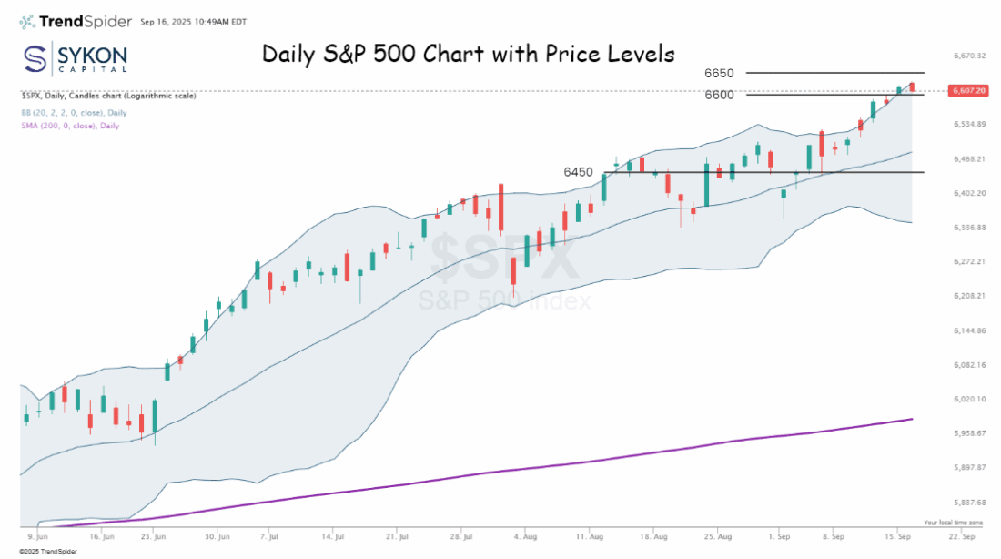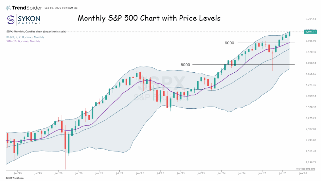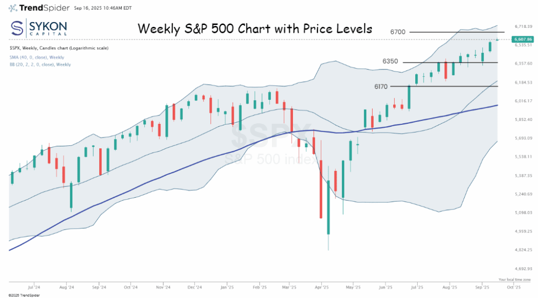 Since April’s lows near 5000, the S&P has climbed 32 percent. Each of the last three weekly closes has been stronger than the last, breaking cleanly out of the summer’s sideways range. This is textbook momentum.