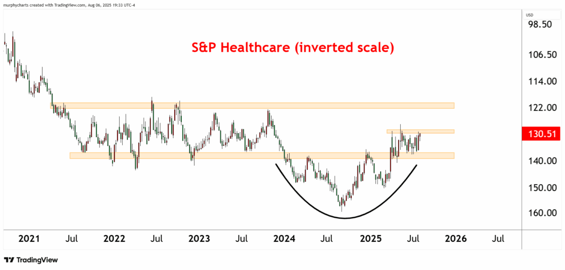 The Healthcare sector has been out of favor for quite some time. Underperforming even cash assets over the trailing 3yrs. When price has reached an extreme in either direction, I find it valuable to invert the price scale and re-evaluate.