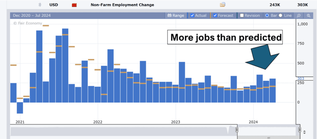 The Fed doesn’t want to cut rates if they think inflation is going to hang around. One factor that predicts inflation is job growth, because, in theory, a highly employed workforce is the foundation for resilient consumer spending. If this trend continues, the Fed will be less inclined to cut rates any time soon, and the possibility that they will forego cuts this year grows.