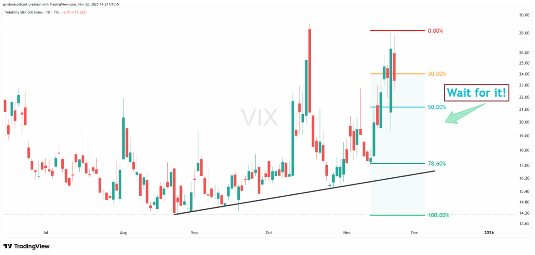 Historically VIX remaining above 20 is still a bearish sentiment. The 50% retracement wouldn’t even make it below that level. Therefore it appears there is a good chance the selling isn’t done yet.