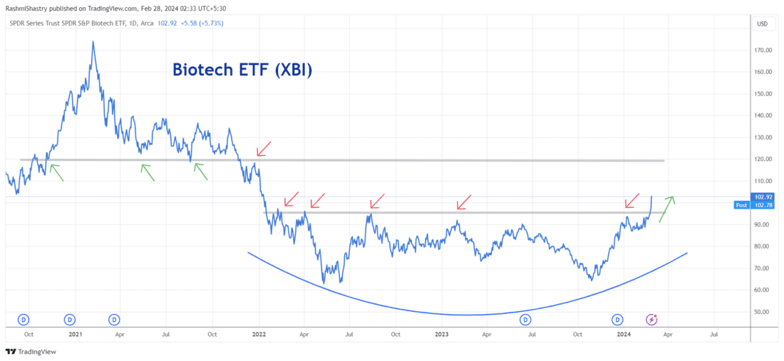 We now have a breakout come through in Biotechnology as well. This is textbook- style sector rotation followed by broadening sectoral participation.