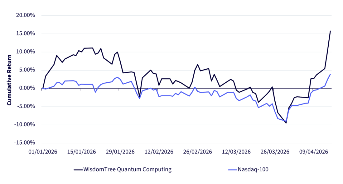 But the signals are starting to emerge. Progress is becoming more visible. Milestones are becoming more tangible. Markets are starting to respond. Year-to-date, the WisdomTree Classiq Quantum Computing UCITS Index returned 15.75% vs. 3.92% delivered by the Nasdaq-100 (See Figure 2).