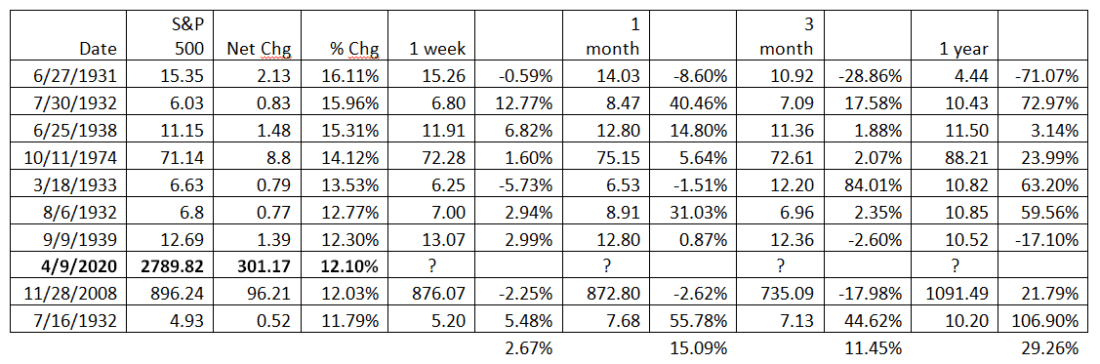 Last week was fascinating and historic. It was widely reported that equity indices in the US had their best week in decades. While I am always fascinated by market anomalies, it is more relevant to see what happened in the sessions after similar moves higher. What occurred last week is now behind us; traders and investors must be forward looking and see if there is a tradable precedent in the prior data. Let’s see if we can find one, using historical charts and graphs.