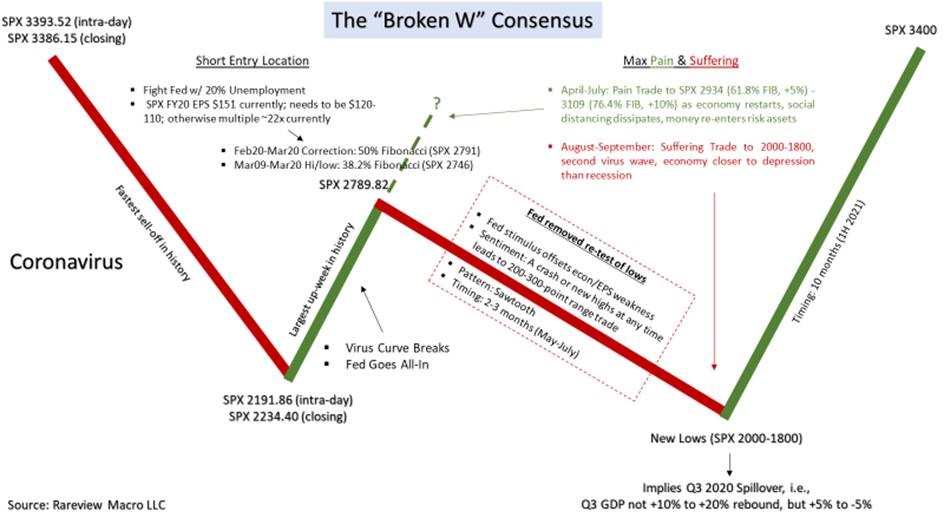 3. That the S&P 500 could be in multi-hundred point range trade for months as Fed stimulus is offset by economic and EPS weakenss;