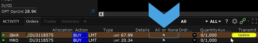 The second method is to change an existing order to an All-or-None through the orders tab in the activity panel.