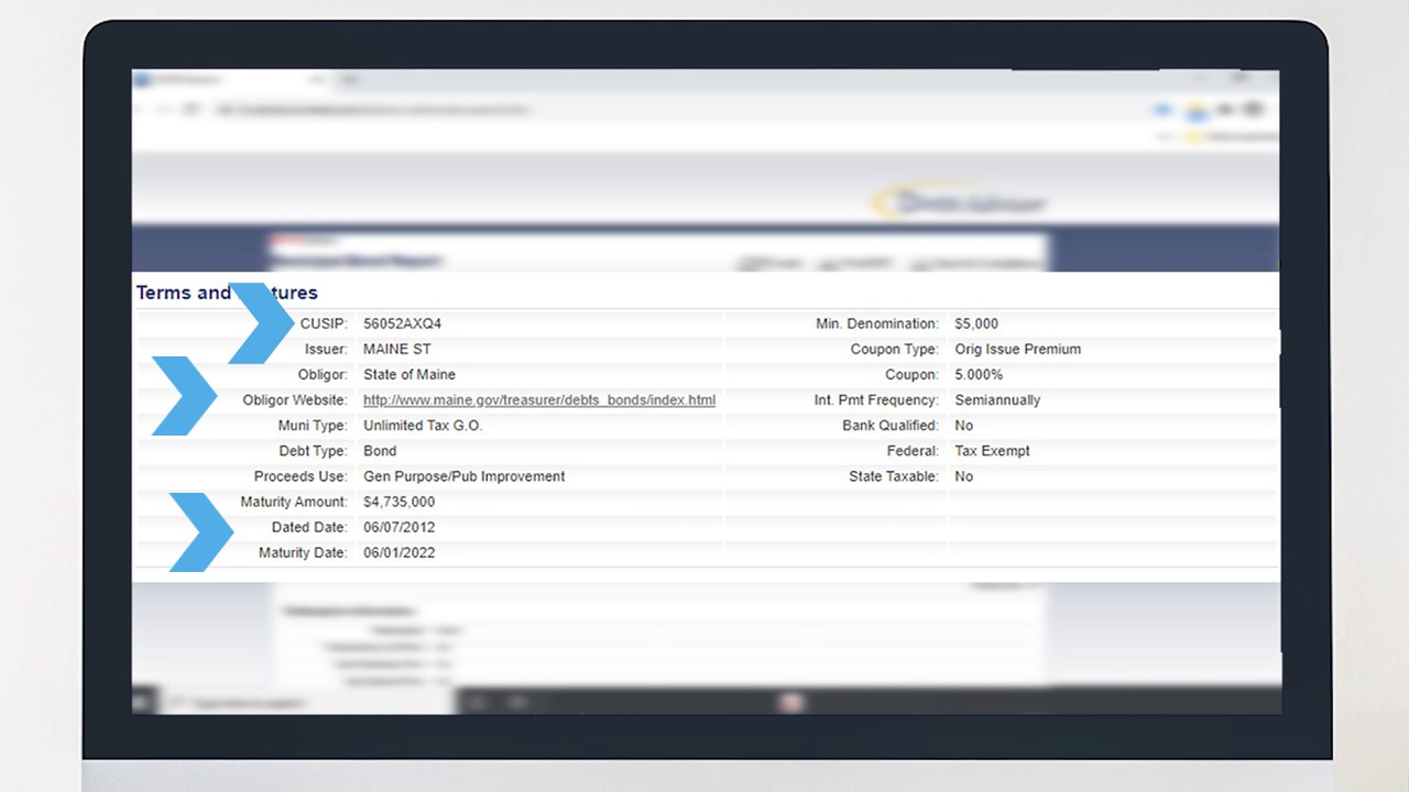 EMMA houses the bond’s Official Statement and Continuing Disclosures, among other municipal issuance-related documents.