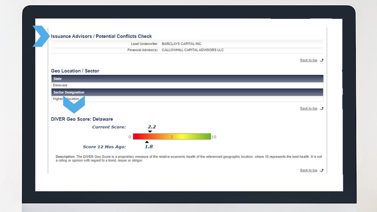 The DIVER Geo Score: which is a proprietary measure of the relative economic health of the issuer’s geography
