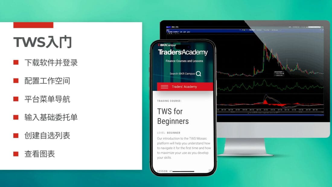 您还可进一步探索TWS委托单类型入门、图表入门等课程,或从一系列与投资产品相关的课程中选择——比如和股票、期权、固定收益产品、期货、外汇等相关的课程。