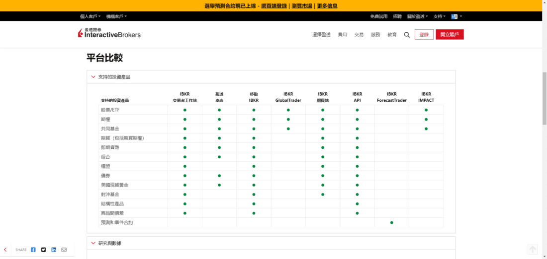 對於專注於固定收益市場或共同基金的客戶,IBKR也提供債券服務市場和共同基金服務市場,您可點擊網站「服務」功能表下的相關連結來查看這些平台。