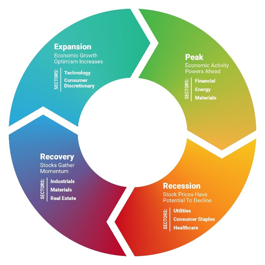 The aim for many investors is to grow their portfolios in-line or above a major stock market benchmark index. Market timers will aim to join in the upside of the stock market and avoid as much of the downside as they can. Others will attempt to outperform the broad market index by superior stock selection. That means by owning stocks that do better than average when the market goes up and avoiding those that underperform. However, there is another investing angle that is often considered in the investing process. Savvy investors attempt to invest according to the business or economic cycle.