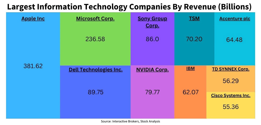 Despite the risks, investing in the IT sector offers unique opportunities for capital appreciation and income generation, given the rapid pace of innovation and the critical role it plays in the modern economy. The sector’s growth is driven by the increasing digitization of business processes and the growing demand for efficient and secure technology solutions. Some of the largest companies within the sector includes Microsoft Corporation (MSFT), Apple Inc. (AAPL), and Dell Technologies Inc (DELL). These companies represent a mix of hardware, software, and internet service providers that dominate the IT space and provide significant profit to their shareholders.