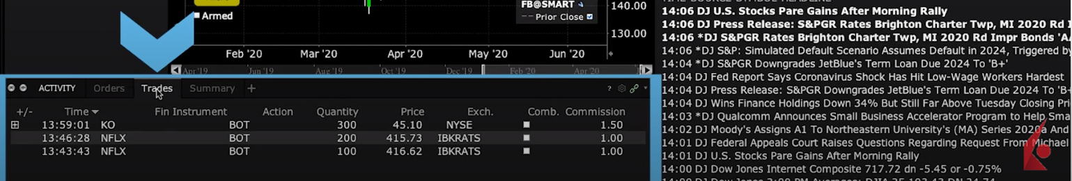 The Orders tab in the Activity panel will provide you with an update on your open order, and details on filled orders will display on the Trades tab.