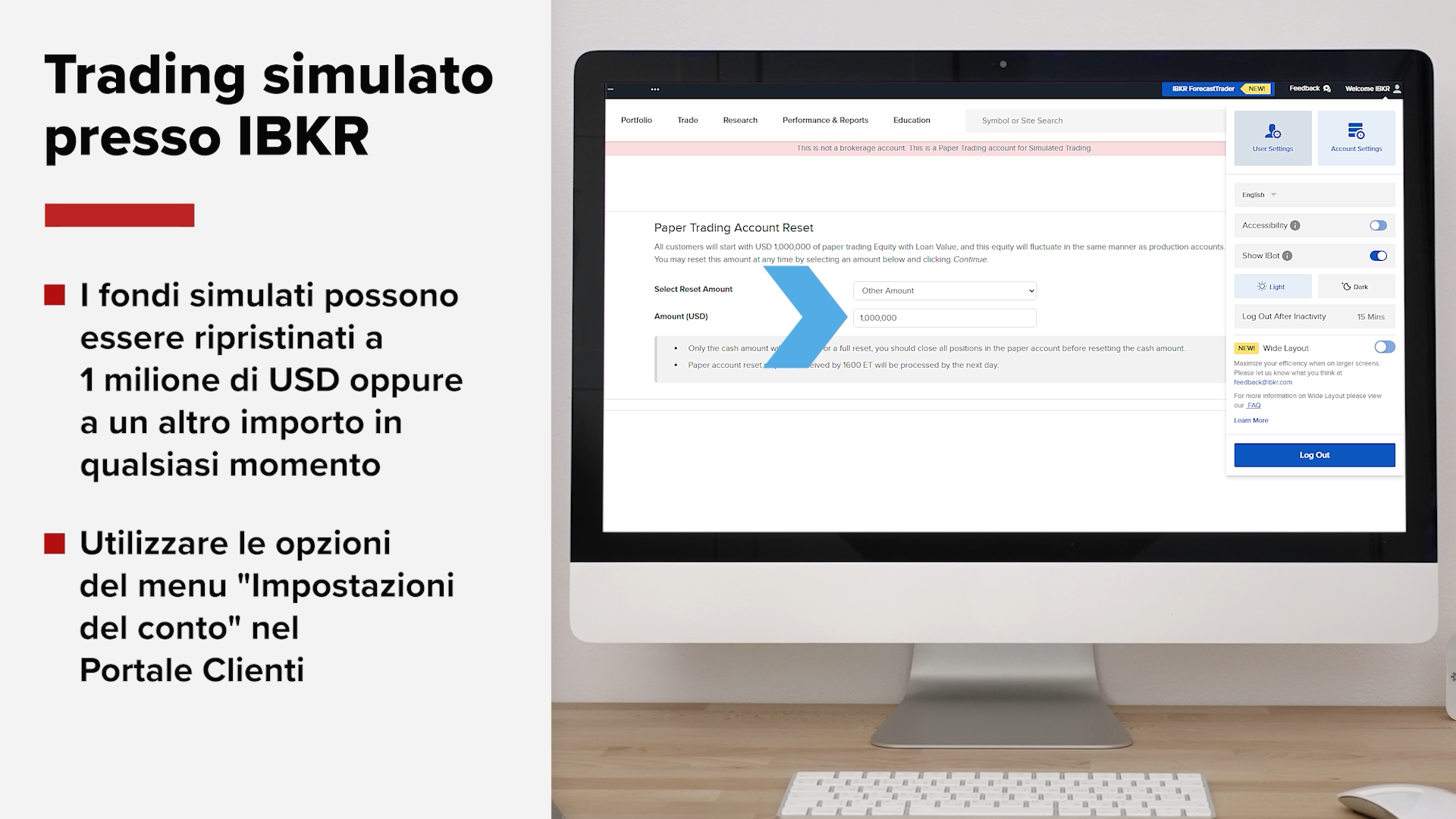 Il trading simulato è un ottimo modo per esplorare le piattaforme, gli strumenti e le funzionalità di IBKR in un ambiente di trading sicuro.